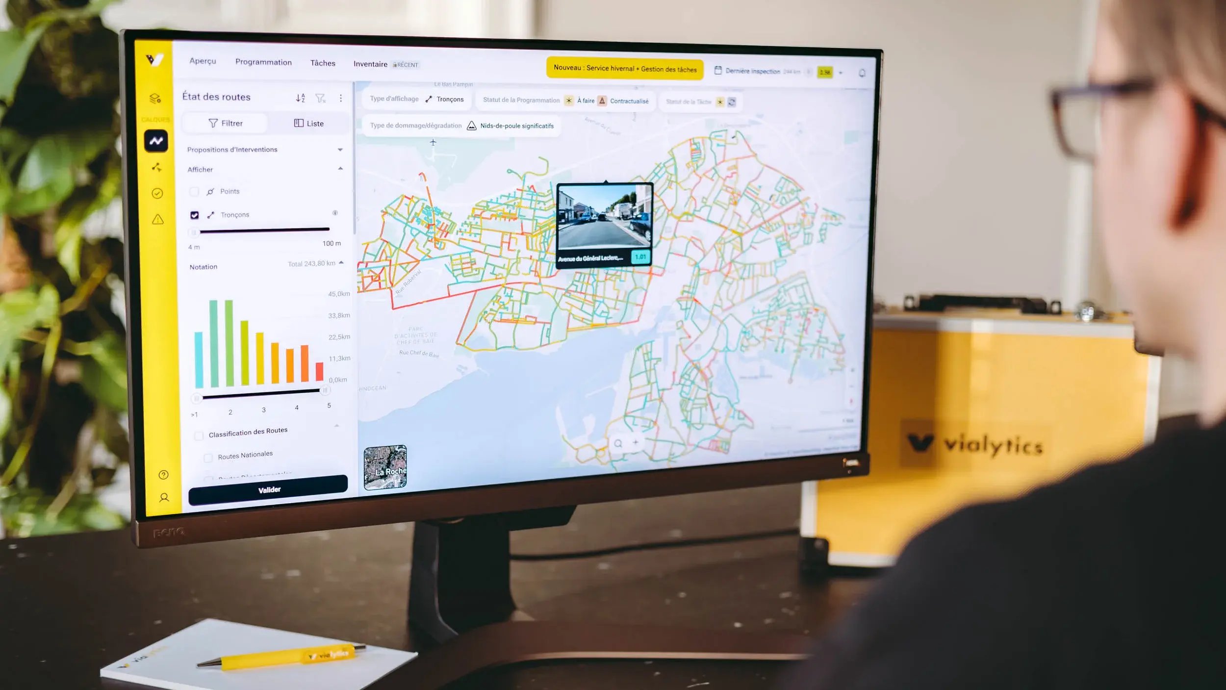 Les images capturées lors des inspections sont ensuite analysées par l'algorithme de vialytics, qui détecte rapidement et objectivement les dommages sur la surface de la route, les classant dans 15 catégories. Les infrastructures défectueuses, comme les panneaux de signalisation ou les regards, sont également documentées.